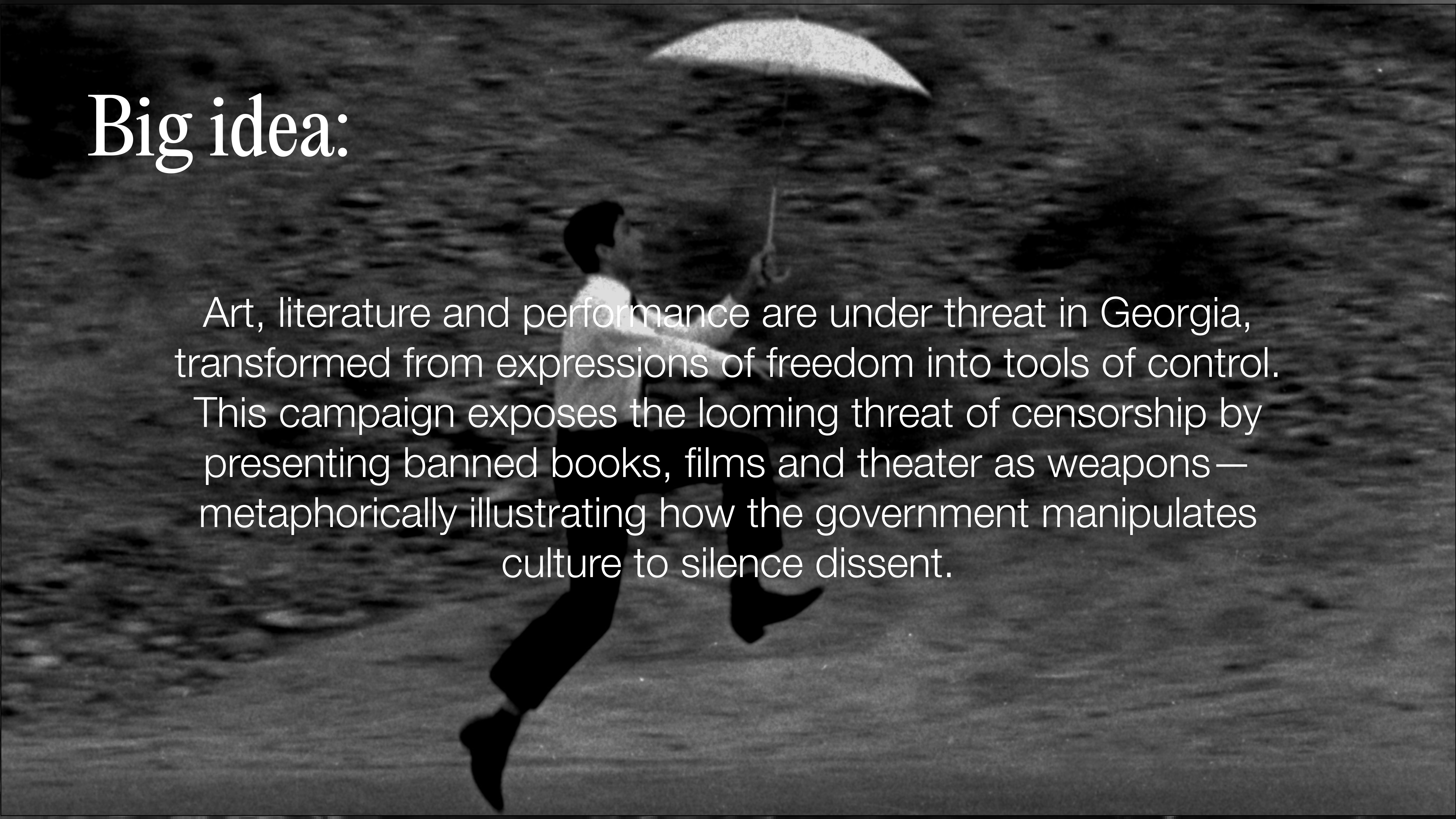 With the campaign, the objective was to confront the rising tide of censorship in Georgia—not with outrage, but with clarity. The campaign launched in response to the December 2, 2024 law restricting LGBT rights and criminalizing expression. It reframed books, films and theater not as entertainment, but as artifacts under siege.